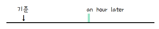 an hour later는 “그로부터 한 시간 후”를 의미하며, 기준으로부터 한 시간 지난 시점을 나타냅니다.